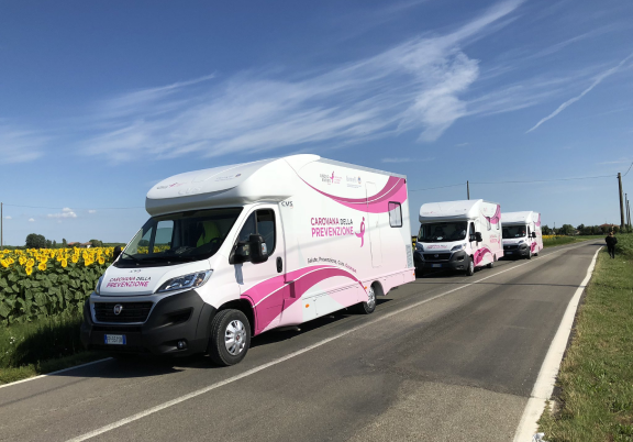 Unità Mobile di Prevenzione secondaria Ginecologica, con uno spazio ambulatoriale multifunzionale per visite specialistiche ginecologiche, ecografie pelviche trans-vaginali e Pap-test ed altri esami finalizzati alla diagnosi precoce dei principali tumori femminili;