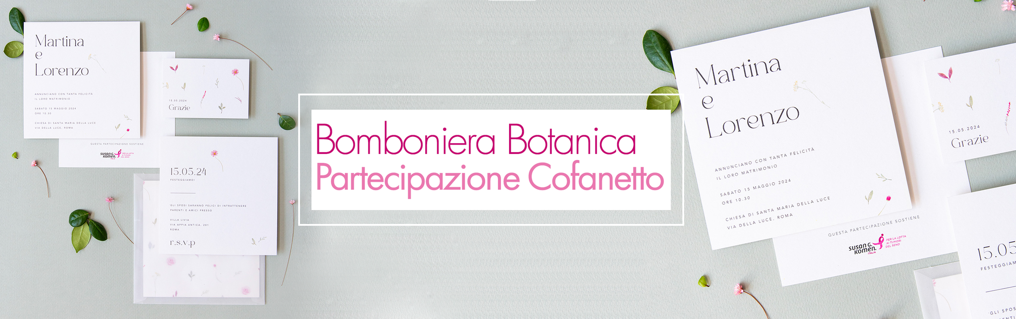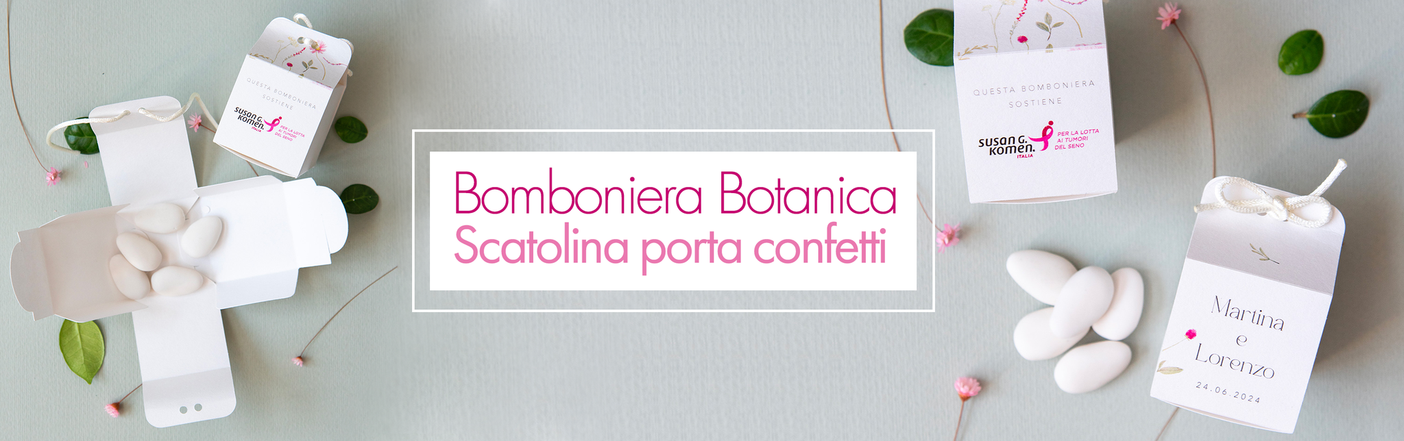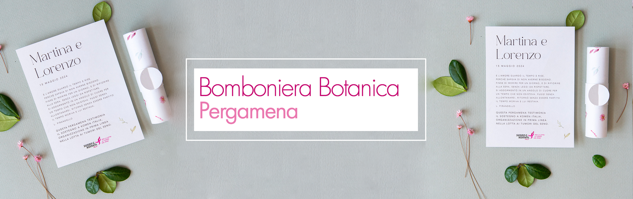 Scrivi a propostesolidali@komen.it o chiama allo 06.35405530 per avere più informazioni, specificando la data dell’evento, quantitativo desiderato e la tipologia della bomboniera scelta.