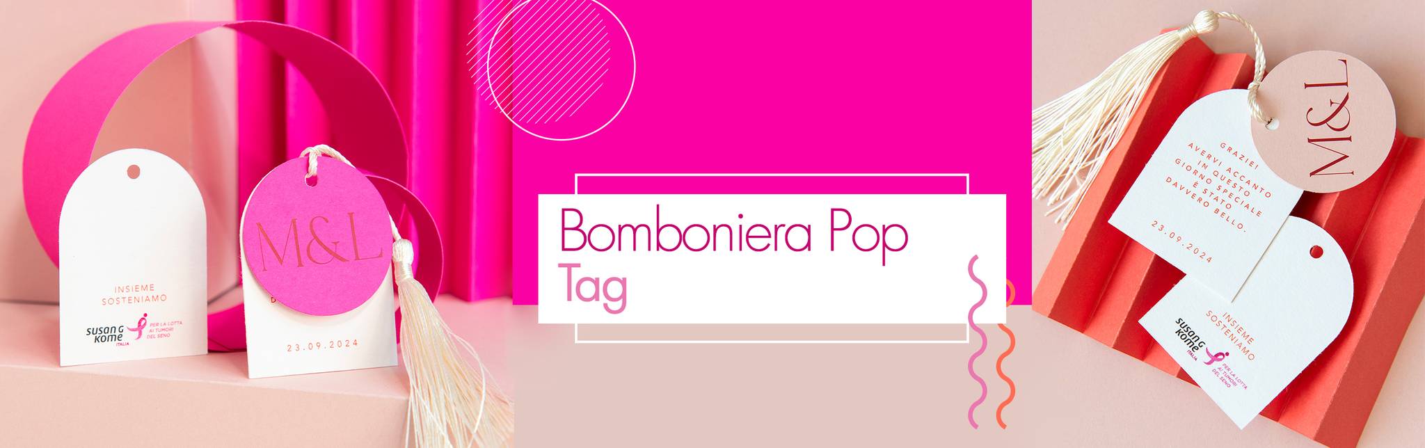 Il biglietto tag pop si compone di due biglietti di diversa dimensione stampati fronte/retro. I bigliettini sono tenuti insieme da una nappina.